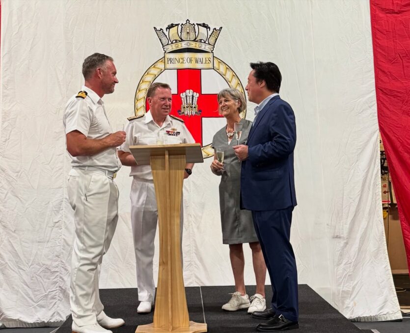 英空母「プリンス・オブ・ウェールズ」の艦内で行われたレセプションにて