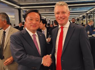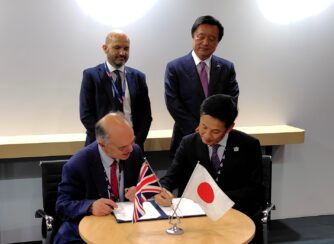 東京湾に寄港している英海軍の空母「プリンス・オブ・ウェールズ」の艦内でのショットです。お隣にいらっしゃる女性が、私が親しくさせていただいているロングボトム駐日英国大使です。この日は「防衛産業デー」として、英国企業を中心に