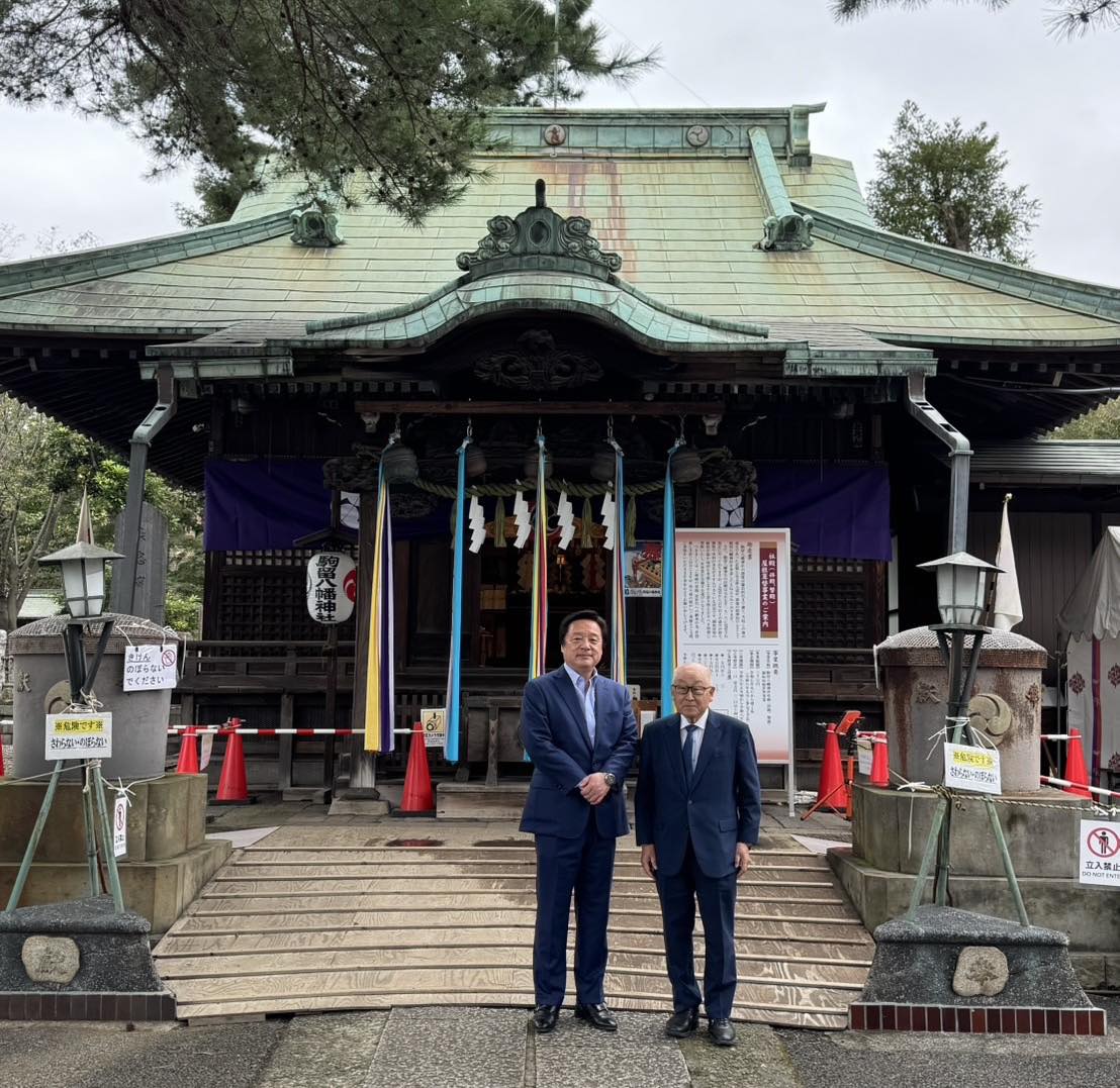 地元世田谷区上馬にある駒留八幡神社の例大祭に伺いました。私のお隣にいらっしゃるのは世田谷区の下山区議です。こちらは何と1308年創建という非常に由緒ある神社で、「せたがや百景」にも選ばれています。今ではすっかり住宅に囲まれていますが、創建時はほとんどが畑や野原だったことでしょう。この先も地域が維持・発展できるよう大切に守っていきたいと思っています。