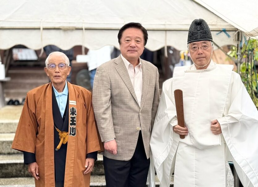 地元の東玉川神社で記念撮影