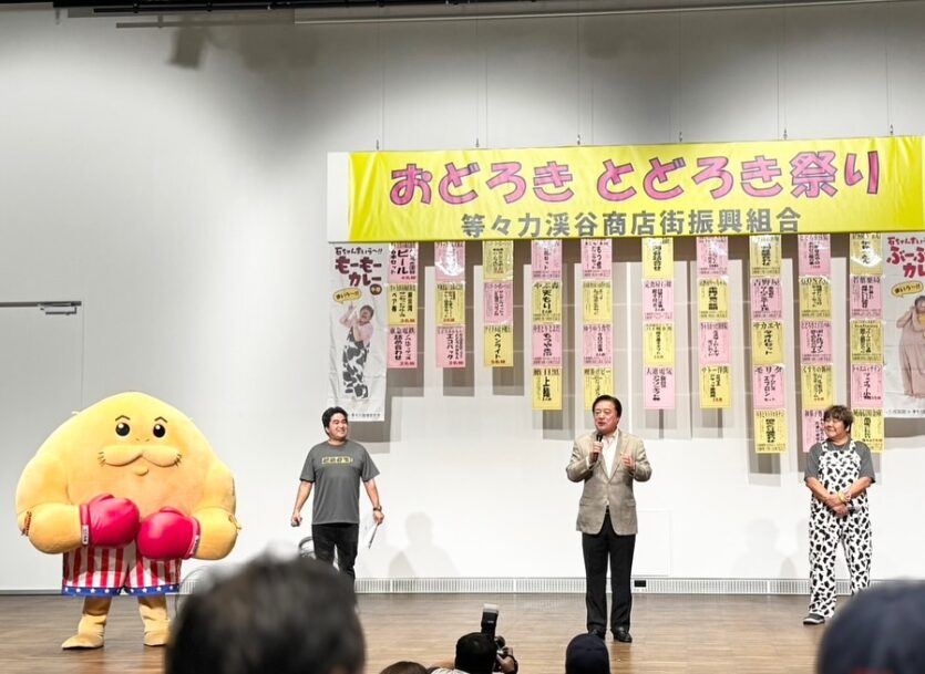 今年も地元の等々力渓谷商店街振興組合主催の「おどろき、とどろき祭り」にお招きいただき、皆様にご挨拶させていただきました。等々力が地元の、「まいうー」でおなじみの石ちゃん(写真右端のタレントの石塚英彦さん)ファミリーが毎年イベントを後押してくれています。等々力は等々力渓谷が有名ですが、多くの皆様にこの名前を知ってもらえればいいなと思っています。