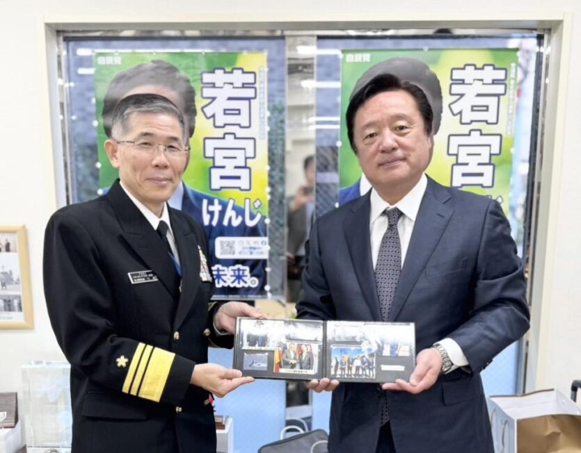 防衛省陸上自衛隊の元海上幕僚副長が昇進の挨拶で事務所を来訪