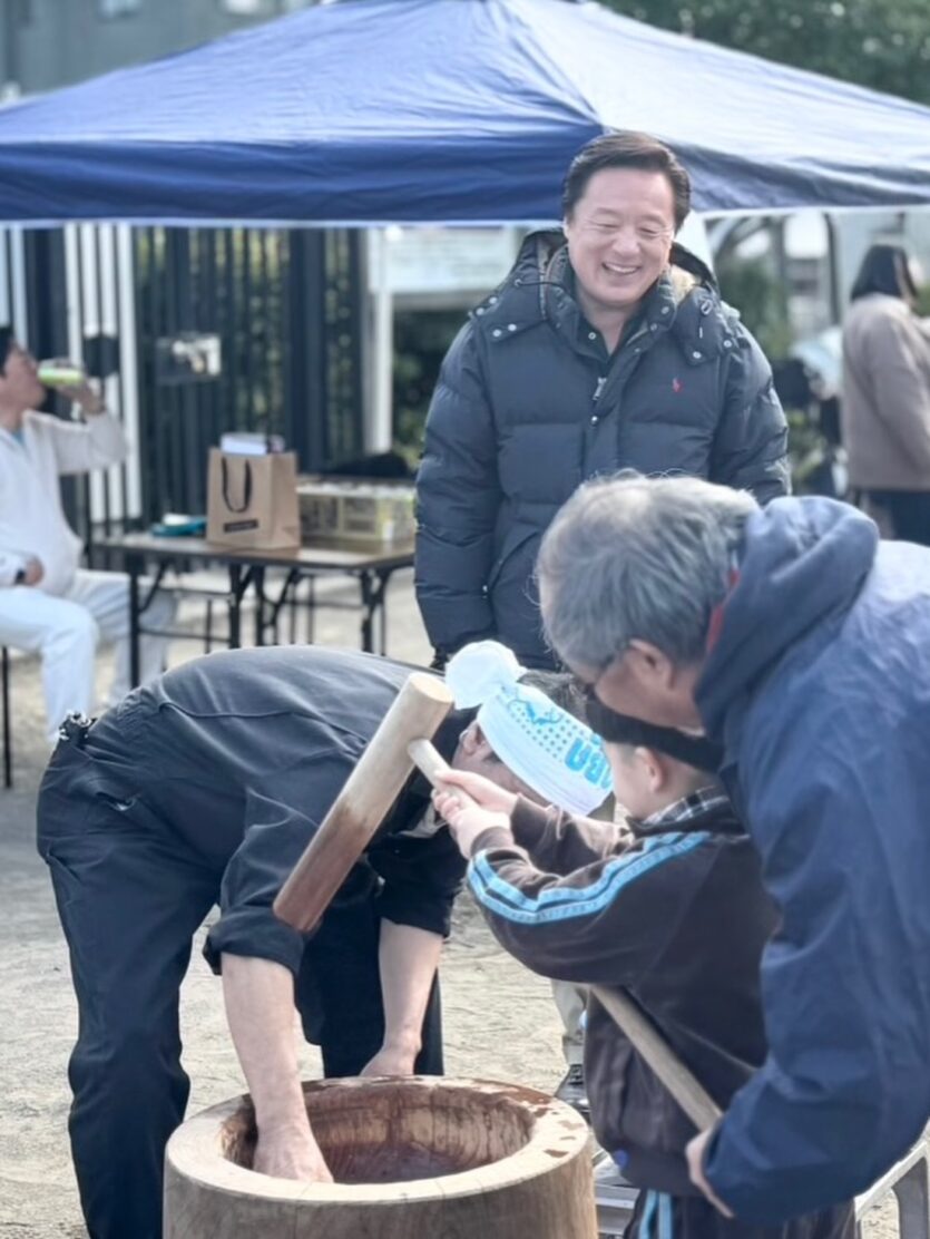 地元世田谷区内の公園で行われた、上野毛商和会主催の「餅つき大会」に参加し、見る側だけではなく、実際に私もつかせていただきました。杵(きね)が重くてさすがにバテましたが、楽しくおいしいひと時を皆様と過ごすことができました。