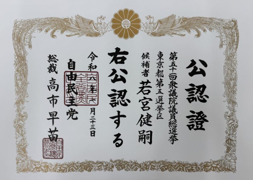 <実際に受け取った公認証>