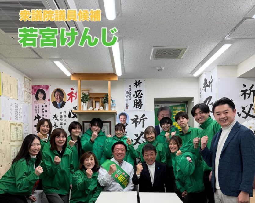 茂木外務大臣と選挙スタッフで事務所にて記念撮影