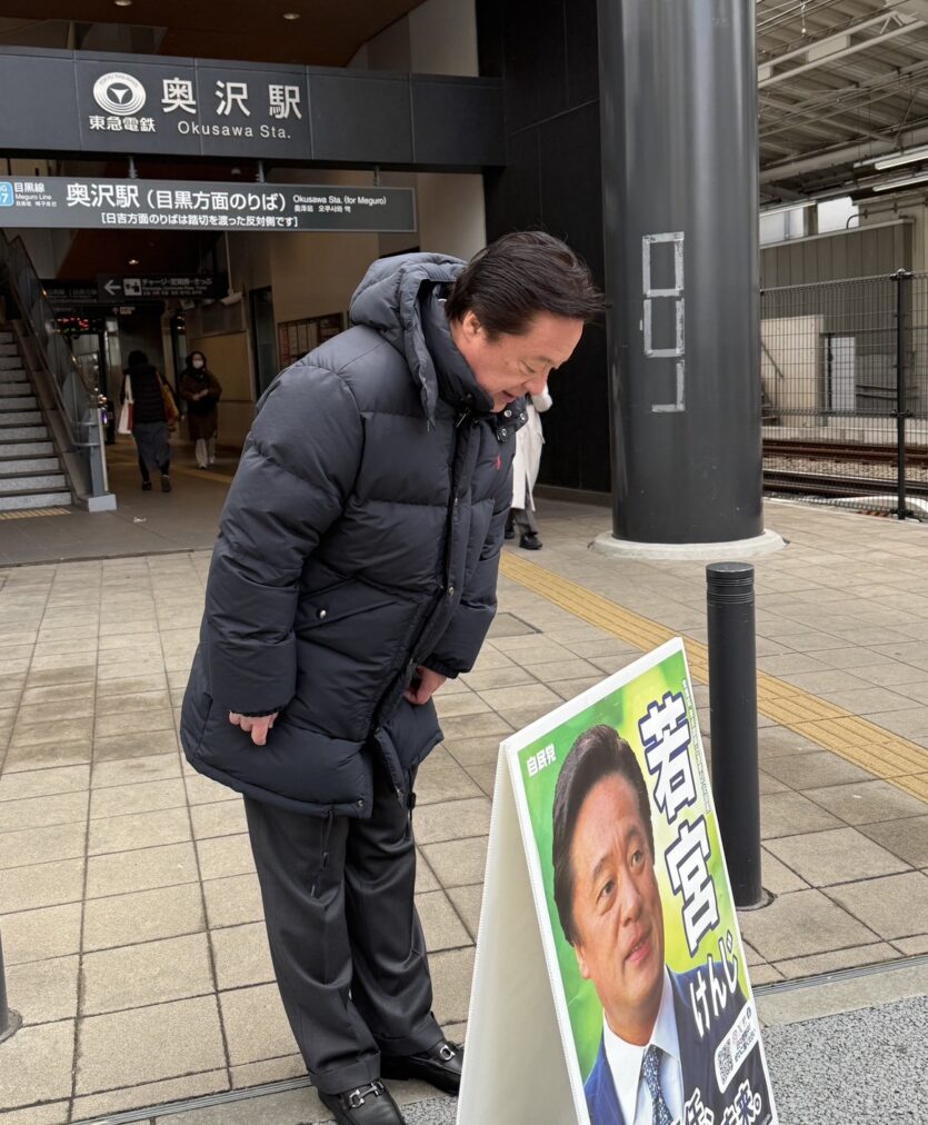 東急目黒線奥沢駅前にて当選御礼のご挨拶